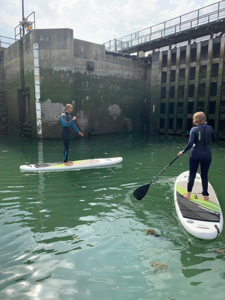 A selection of photos of Stand Up Paddle Board (SUP) lessons.